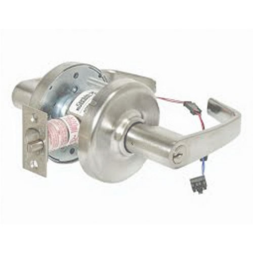 CLX33905 NZD Corbin Russwin Electrified Key-In-Lever Cylindrical Lock. Fail Secure, Deadlocking latchbolt by lever either side except when power off locks outside lever, Power on/unlocks outside lever, Inside lever always free, Latchbolt retracted by key when power is off.